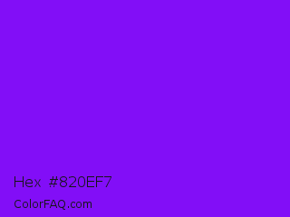 Hex #820ef7 Color is a normal violet color and the nearest color is Violet Color Wheel #7f00ff. Hex code #820ef7 and RGB value is rgb(130,14,247). In RGB color space, this color is composed of 51% red, 5% green, 97% blue, In CMYK color space, this color is composed of 47% cyan, 94% magenta, 0% yellow , 3% black , In HSL color space, this color has a hue angle of 270° , 94% saturation and 51% lightness.