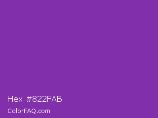 Hex #822fab Color is a normal purple color and the nearest color is Grape #6f2da8. Hex code #822fab and RGB value is rgb(130,47,171). In RGB color space, this color is composed of 51% red, 18% green, 67% blue, In CMYK color space, this color is composed of 24% cyan, 73% magenta, 0% yellow , 33% black , In HSL color space, this color has a hue angle of 280° , 57% saturation and 43% lightness.