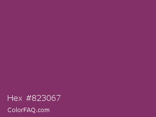 Hex #823067 Color is a normal magenta color and the nearest color is Boysenberry #873260. Hex code #823067 and RGB value is rgb(130,48,103). In RGB color space, this color is composed of 51% red, 19% green, 40% blue, In CMYK color space, this color is composed of 0% cyan, 63% magenta, 21% yellow , 49% black , In HSL color space, this color has a hue angle of 320° , 46% saturation and 35% lightness.