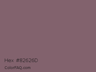 Hex #82626d Color is a normal rose color and the nearest color is Falcon #7f626d. Hex code #82626d and RGB value is rgb(130,98,109). In RGB color space, this color is composed of 51% red, 38% green, 43% blue, In CMYK color space, this color is composed of 0% cyan, 25% magenta, 16% yellow , 49% black , In HSL color space, this color has a hue angle of 339° , 14% saturation and 45% lightness.
