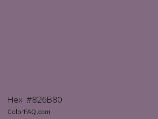 Hex #826b80 Color is a normal magenta color and the nearest color is Fedora #796a78. Hex code #826b80 and RGB value is rgb(130,107,128). In RGB color space, this color is composed of 51% red, 42% green, 50% blue, In CMYK color space, this color is composed of 0% cyan, 18% magenta, 2% yellow , 49% black , In HSL color space, this color has a hue angle of 305° , 10% saturation and 46% lightness.