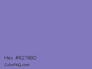 Hex #8278bd Color is a light indigo color and the nearest color is Ube #8878c3. Hex code #8278bd and RGB value is rgb(130,120,189). In RGB color space, this color is composed of 51% red, 47% green, 74% blue, In CMYK color space, this color is composed of 31% cyan, 37% magenta, 0% yellow , 26% black , In HSL color space, this color has a hue angle of 249° , 34% saturation and 61% lightness.