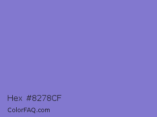 Hex #8278cf Color is a light indigo color and the nearest color is Moody Blue #7f76d3. Hex code #8278cf and RGB value is rgb(130,120,207). In RGB color space, this color is composed of 51% red, 47% green, 81% blue, In CMYK color space, this color is composed of 37% cyan, 42% magenta, 0% yellow , 19% black , In HSL color space, this color has a hue angle of 247° , 48% saturation and 64% lightness.