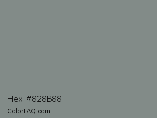 Hex #828b88 Color is a normal green color and the nearest color is Dolphin Gray #828e84. Hex code #828b88 and RGB value is rgb(130,139,136). In RGB color space, this color is composed of 51% red, 55% green, 53% blue, In CMYK color space, this color is composed of 6% cyan, 0% magenta, 2% yellow , 45% black , In HSL color space, this color has a hue angle of 160° , 4% saturation and 53% lightness.