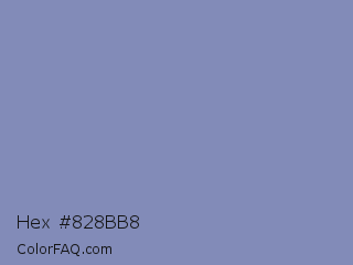 Hex #828bb8 Color is a light blue color and the nearest color is Wild Blue Yonder #7a89b8. Hex code #828bb8 and RGB value is rgb(130,139,184). In RGB color space, this color is composed of 51% red, 55% green, 72% blue, In CMYK color space, this color is composed of 29% cyan, 24% magenta, 0% yellow , 28% black , In HSL color space, this color has a hue angle of 230° , 28% saturation and 62% lightness.