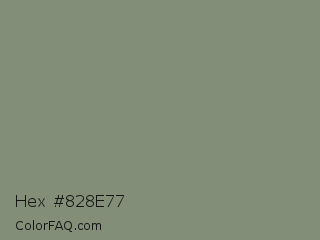 Hex #828e77 Color is a normal green color and the nearest color is Battleship Gray #828f72. Hex code #828e77 and RGB value is rgb(130,142,119). In RGB color space, this color is composed of 51% red, 56% green, 47% blue, In CMYK color space, this color is composed of 8% cyan, 0% magenta, 16% yellow , 44% black , In HSL color space, this color has a hue angle of 91° , 9% saturation and 51% lightness.