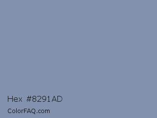 Hex #8291ad Color is a normal blue color and the nearest color is Weldon Blue #7c98ab. Hex code #8291ad and RGB value is rgb(130,145,173). In RGB color space, this color is composed of 51% red, 57% green, 68% blue, In CMYK color space, this color is composed of 25% cyan, 16% magenta, 0% yellow , 32% black , In HSL color space, this color has a hue angle of 219° , 21% saturation and 59% lightness.