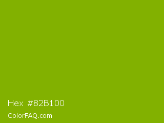 Hex #82b100 Color is a normal lime color and the nearest color is Apple Green #8db600. Hex code #82b100 and RGB value is rgb(130,177,0). In RGB color space, this color is composed of 51% red, 69% green, 0% blue, In CMYK color space, this color is composed of 27% cyan, 0% magenta, 100% yellow , 31% black , In HSL color space, this color has a hue angle of 76° , 100% saturation and 35% lightness.