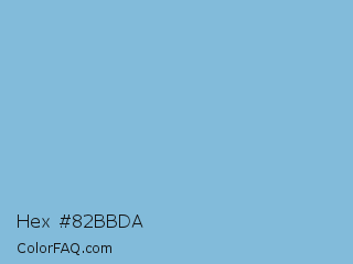 Hex #82bbda Color is a light blue color and the nearest color is Dark Sky Blue #8cbed6. Hex code #82bbda and RGB value is rgb(130,187,218). In RGB color space, this color is composed of 51% red, 73% green, 85% blue, In CMYK color space, this color is composed of 40% cyan, 14% magenta, 0% yellow , 15% black , In HSL color space, this color has a hue angle of 201° , 54% saturation and 68% lightness.