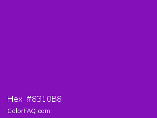 Hex #8310b8 Color is a normal purple color and the nearest color is Violet RYB #8601af. Hex code #8310b8 and RGB value is rgb(131,16,184). In RGB color space, this color is composed of 51% red, 6% green, 72% blue, In CMYK color space, this color is composed of 29% cyan, 91% magenta, 0% yellow , 28% black , In HSL color space, this color has a hue angle of 281° , 84% saturation and 39% lightness.