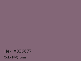 Hex #836677 Color is a normal magenta color and the nearest color is Spicy Pink #816e71. Hex code #836677 and RGB value is rgb(131,102,119). In RGB color space, this color is composed of 51% red, 40% green, 47% blue, In CMYK color space, this color is composed of 0% cyan, 22% magenta, 9% yellow , 49% black , In HSL color space, this color has a hue angle of 325° , 12% saturation and 46% lightness.