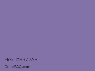 Hex #8372a8 Color is a normal indigo color and the nearest color is Kimberly #736c9f. Hex code #8372a8 and RGB value is rgb(131,114,168). In RGB color space, this color is composed of 51% red, 45% green, 66% blue, In CMYK color space, this color is composed of 22% cyan, 32% magenta, 0% yellow , 34% black , In HSL color space, this color has a hue angle of 259° , 24% saturation and 55% lightness.