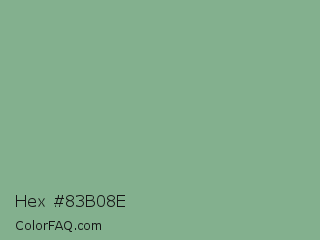 Hex #83b08e Color is a normal green color and the nearest color is Bay Leaf #7da98d. Hex code #83b08e and RGB value is rgb(131,176,142). In RGB color space, this color is composed of 51% red, 69% green, 56% blue, In CMYK color space, this color is composed of 26% cyan, 0% magenta, 19% yellow , 31% black , In HSL color space, this color has a hue angle of 135° , 22% saturation and 60% lightness.