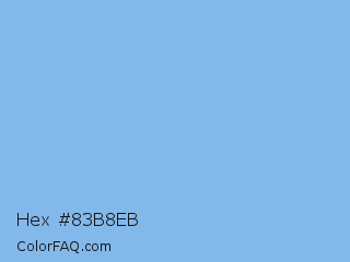 Hex #83b8eb Color is a light blue color and the nearest color is Aero #7cb9e8. Hex code #83b8eb and RGB value is rgb(131,184,235). In RGB color space, this color is composed of 51% red, 72% green, 92% blue, In CMYK color space, this color is composed of 44% cyan, 22% magenta, 0% yellow , 8% black , In HSL color space, this color has a hue angle of 209° , 72% saturation and 72% lightness.