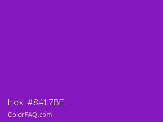 Hex #8417be Color is a normal purple color and the nearest color is French Violet #8806ce. Hex code #8417be and RGB value is rgb(132,23,190). In RGB color space, this color is composed of 52% red, 9% green, 75% blue, In CMYK color space, this color is composed of 31% cyan, 88% magenta, 0% yellow , 25% black , In HSL color space, this color has a hue angle of 279° , 78% saturation and 42% lightness.