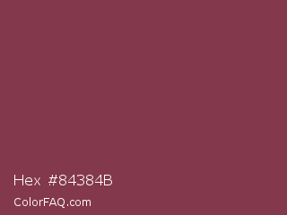 Hex #84384b Color is a normal red color and the nearest color is Solid Pink #893843. Hex code #84384b and RGB value is rgb(132,56,75). In RGB color space, this color is composed of 52% red, 22% green, 29% blue, In CMYK color space, this color is composed of 0% cyan, 58% magenta, 43% yellow , 48% black , In HSL color space, this color has a hue angle of 345° , 40% saturation and 37% lightness.