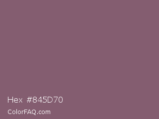 Hex #845d70 Color is a normal rose color and the nearest color is Falcon #7f626d. Hex code #845d70 and RGB value is rgb(132,93,112). In RGB color space, this color is composed of 52% red, 36% green, 44% blue, In CMYK color space, this color is composed of 0% cyan, 30% magenta, 15% yellow , 48% black , In HSL color space, this color has a hue angle of 331° , 17% saturation and 44% lightness.