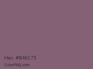 Hex #846175 Color is a normal magenta color and the nearest color is Falcon #7f626d. Hex code #846175 and RGB value is rgb(132,97,117). In RGB color space, this color is composed of 52% red, 38% green, 46% blue, In CMYK color space, this color is composed of 0% cyan, 27% magenta, 11% yellow , 48% black , In HSL color space, this color has a hue angle of 326° , 15% saturation and 45% lightness.