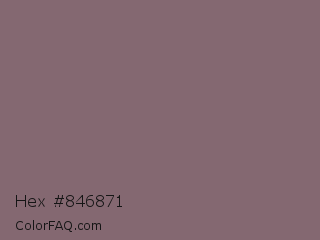 Hex #846871 Color is a normal rose color and the nearest color is Spicy Pink #816e71. Hex code #846871 and RGB value is rgb(132,104,113). In RGB color space, this color is composed of 52% red, 41% green, 44% blue, In CMYK color space, this color is composed of 0% cyan, 21% magenta, 14% yellow , 48% black , In HSL color space, this color has a hue angle of 341° , 12% saturation and 46% lightness.