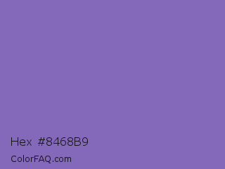 Hex #8468b9 Color is a normal violet color and the nearest color is Middle Blue Purple #8b72be. Hex code #8468b9 and RGB value is rgb(132,104,185). In RGB color space, this color is composed of 52% red, 41% green, 73% blue, In CMYK color space, this color is composed of 29% cyan, 44% magenta, 0% yellow , 27% black , In HSL color space, this color has a hue angle of 261° , 37% saturation and 57% lightness.