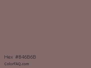 Hex #846b6b Color is a normal red color and the nearest color is Spicy Pink #816e71. Hex code #846b6b and RGB value is rgb(132,107,107). In RGB color space, this color is composed of 52% red, 42% green, 42% blue, In CMYK color space, this color is composed of 0% cyan, 19% magenta, 19% yellow , 48% black , In HSL color space, this color has a hue angle of 0° , 10% saturation and 47% lightness.