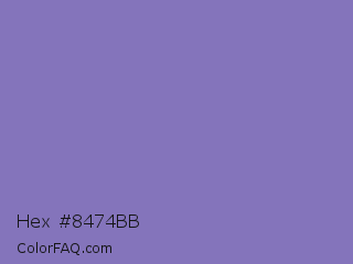 Hex #8474bb Color is a normal indigo color and the nearest color is Middle Blue Purple #8b72be. Hex code #8474bb and RGB value is rgb(132,116,187). In RGB color space, this color is composed of 52% red, 45% green, 73% blue, In CMYK color space, this color is composed of 29% cyan, 38% magenta, 0% yellow , 27% black , In HSL color space, this color has a hue angle of 254° , 34% saturation and 59% lightness.