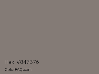 Hex #847b76 Color is a normal orange color and the nearest color is Friar Gray #807e79. Hex code #847b76 and RGB value is rgb(132,123,118). In RGB color space, this color is composed of 52% red, 48% green, 46% blue, In CMYK color space, this color is composed of 0% cyan, 7% magenta, 11% yellow , 48% black , In HSL color space, this color has a hue angle of 21° , 6% saturation and 49% lightness.
