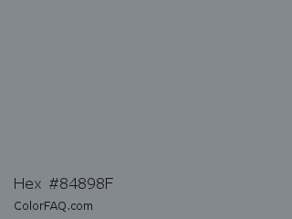 Hex #84898f Color is a normal blue color and the nearest color is Oslo Gray #878d91. Hex code #84898f and RGB value is rgb(132,137,143). In RGB color space, this color is composed of 52% red, 54% green, 56% blue, In CMYK color space, this color is composed of 8% cyan, 4% magenta, 0% yellow , 44% black , In HSL color space, this color has a hue angle of 213° , 5% saturation and 54% lightness.