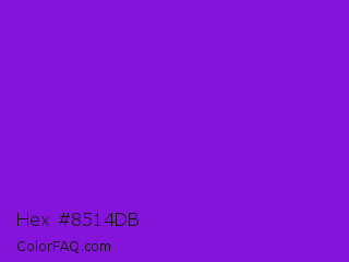 Hex #8514db Color is a normal purple color and the nearest color is French Violet #8806ce. Hex code #8514db and RGB value is rgb(133,20,219). In RGB color space, this color is composed of 52% red, 8% green, 86% blue, In CMYK color space, this color is composed of 39% cyan, 91% magenta, 0% yellow , 14% black , In HSL color space, this color has a hue angle of 274° , 83% saturation and 47% lightness.