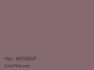 Hex #856b6f Color is a normal red color and the nearest color is Spicy Pink #816e71. Hex code #856b6f and RGB value is rgb(133,107,111). In RGB color space, this color is composed of 52% red, 42% green, 44% blue, In CMYK color space, this color is composed of 0% cyan, 20% magenta, 17% yellow , 48% black , In HSL color space, this color has a hue angle of 351° , 11% saturation and 47% lightness.
