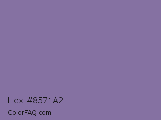 Hex #8571a2 Color is a normal violet color and the nearest color is Kimberly #736c9f. Hex code #8571a2 and RGB value is rgb(133,113,162). In RGB color space, this color is composed of 52% red, 44% green, 64% blue, In CMYK color space, this color is composed of 18% cyan, 30% magenta, 0% yellow , 36% black , In HSL color space, this color has a hue angle of 264° , 21% saturation and 54% lightness.