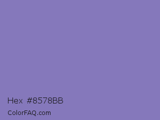 Hex #8578bb Color is a normal indigo color and the nearest color is Ube #8878c3. Hex code #8578bb and RGB value is rgb(133,120,187). In RGB color space, this color is composed of 52% red, 47% green, 73% blue, In CMYK color space, this color is composed of 29% cyan, 36% magenta, 0% yellow , 27% black , In HSL color space, this color has a hue angle of 252° , 33% saturation and 60% lightness.