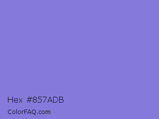 Hex #857adb Color is a light indigo color and the nearest color is Chetwode Blue #8581d9. Hex code #857adb and RGB value is rgb(133,122,219). In RGB color space, this color is composed of 52% red, 48% green, 86% blue, In CMYK color space, this color is composed of 39% cyan, 44% magenta, 0% yellow , 14% black , In HSL color space, this color has a hue angle of 247° , 57% saturation and 67% lightness.