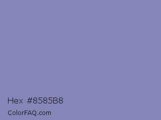 Hex #8585b8 Color is a light blue color and the nearest color is Wild Blue Yonder #7a89b8. Hex code #8585b8 and RGB value is rgb(133,133,184). In RGB color space, this color is composed of 52% red, 52% green, 72% blue, In CMYK color space, this color is composed of 28% cyan, 28% magenta, 0% yellow , 28% black , In HSL color space, this color has a hue angle of 240° , 26% saturation and 62% lightness.