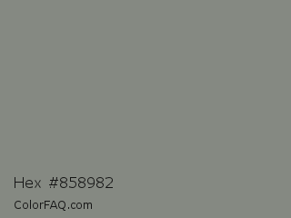 Hex #858982 Color is a normal green color and the nearest color is Battleship Grey #848482. Hex code #858982 and RGB value is rgb(133,137,130). In RGB color space, this color is composed of 52% red, 54% green, 51% blue, In CMYK color space, this color is composed of 3% cyan, 0% magenta, 5% yellow , 46% black , In HSL color space, this color has a hue angle of 94° , 3% saturation and 52% lightness.