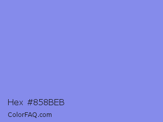 Hex #858beb Color is a light blue color and the nearest color is Chetwode Blue #8581d9. Hex code #858beb and RGB value is rgb(133,139,235). In RGB color space, this color is composed of 52% red, 55% green, 92% blue, In CMYK color space, this color is composed of 43% cyan, 41% magenta, 0% yellow , 8% black , In HSL color space, this color has a hue angle of 236° , 72% saturation and 72% lightness.