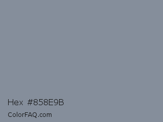 Hex #858e9b Color is a normal blue color and the nearest color is Regent Gray #86949f. Hex code #858e9b and RGB value is rgb(133,142,155). In RGB color space, this color is composed of 52% red, 56% green, 61% blue, In CMYK color space, this color is composed of 14% cyan, 8% magenta, 0% yellow , 39% black , In HSL color space, this color has a hue angle of 215° , 10% saturation and 56% lightness.