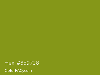 Hex #859718 Color is a normal yellow color and the nearest color is Trendy Green #7c881a. Hex code #859718 and RGB value is rgb(133,151,24). In RGB color space, this color is composed of 52% red, 59% green, 9% blue, In CMYK color space, this color is composed of 12% cyan, 0% magenta, 84% yellow , 41% black , In HSL color space, this color has a hue angle of 69° , 73% saturation and 34% lightness.