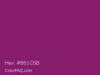 Hex #861c6b Color is a normal magenta color and the nearest color is Dark Raspberry #872657. Hex code #861c6b and RGB value is rgb(134,28,107). In RGB color space, this color is composed of 53% red, 11% green, 42% blue, In CMYK color space, this color is composed of 0% cyan, 79% magenta, 20% yellow , 47% black , In HSL color space, this color has a hue angle of 315° , 65% saturation and 32% lightness.