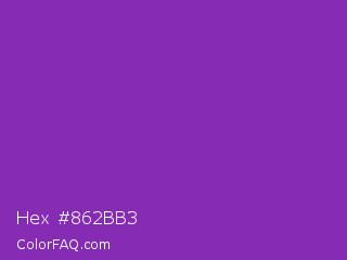 Hex #862bb3 Color is a normal purple color and the nearest color is Grape #6f2da8. Hex code #862bb3 and RGB value is rgb(134,43,179). In RGB color space, this color is composed of 53% red, 17% green, 70% blue, In CMYK color space, this color is composed of 25% cyan, 76% magenta, 0% yellow , 30% black , In HSL color space, this color has a hue angle of 280° , 61% saturation and 44% lightness.
