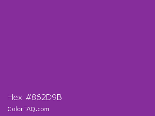 Hex #862d9b Color is a normal purple color and the nearest color is Vivid Violet #803790. Hex code #862d9b and RGB value is rgb(134,45,155). In RGB color space, this color is composed of 53% red, 18% green, 61% blue, In CMYK color space, this color is composed of 14% cyan, 71% magenta, 0% yellow , 39% black , In HSL color space, this color has a hue angle of 289° , 55% saturation and 39% lightness.