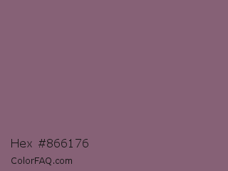 Hex #866176 Color is a normal magenta color and the nearest color is Falcon #7f626d. Hex code #866176 and RGB value is rgb(134,97,118). In RGB color space, this color is composed of 53% red, 38% green, 46% blue, In CMYK color space, this color is composed of 0% cyan, 28% magenta, 12% yellow , 47% black , In HSL color space, this color has a hue angle of 326° , 16% saturation and 45% lightness.