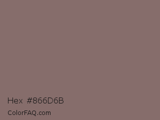 Hex #866d6b Color is a normal red color and the nearest color is Sand Dune #826f65. Hex code #866d6b and RGB value is rgb(134,109,107). In RGB color space, this color is composed of 53% red, 43% green, 42% blue, In CMYK color space, this color is composed of 0% cyan, 19% magenta, 20% yellow , 47% black , In HSL color space, this color has a hue angle of 4° , 11% saturation and 47% lightness.