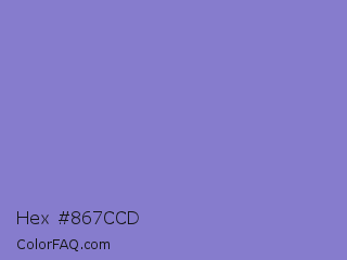 Hex #867ccd Color is a light indigo color and the nearest color is Ube #8878c3. Hex code #867ccd and RGB value is rgb(134,124,205). In RGB color space, this color is composed of 53% red, 49% green, 80% blue, In CMYK color space, this color is composed of 35% cyan, 40% magenta, 0% yellow , 20% black , In HSL color space, this color has a hue angle of 247° , 45% saturation and 65% lightness.