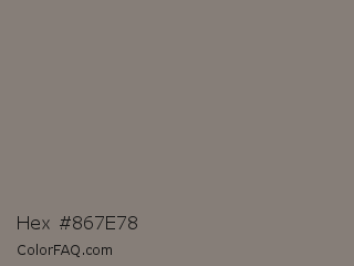 Hex #867e78 Color is a normal orange color and the nearest color is Hurricane #877c7b. Hex code #867e78 and RGB value is rgb(134,126,120). In RGB color space, this color is composed of 53% red, 49% green, 47% blue, In CMYK color space, this color is composed of 0% cyan, 6% magenta, 10% yellow , 47% black , In HSL color space, this color has a hue angle of 26° , 6% saturation and 50% lightness.