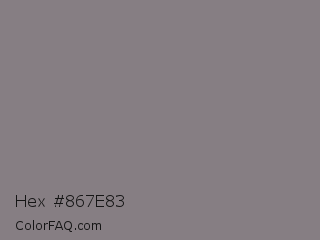 Hex #867e83 Color is a normal magenta color and the nearest color is Rocket Metallic #8a7f80. Hex code #867e83 and RGB value is rgb(134,126,131). In RGB color space, this color is composed of 53% red, 49% green, 51% blue, In CMYK color space, this color is composed of 0% cyan, 6% magenta, 2% yellow , 47% black , In HSL color space, this color has a hue angle of 323° , 3% saturation and 51% lightness.
