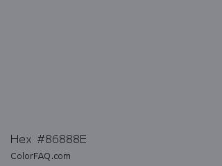 Hex #86888e Color is a normal blue color and the nearest color is Oslo Gray #878d91. Hex code #86888e and RGB value is rgb(134,136,142). In RGB color space, this color is composed of 53% red, 53% green, 56% blue, In CMYK color space, this color is composed of 6% cyan, 4% magenta, 0% yellow , 44% black , In HSL color space, this color has a hue angle of 225° , 3% saturation and 54% lightness.
