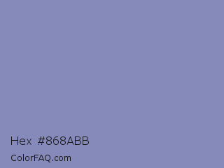 Hex #868abb Color is a light blue color and the nearest color is Wild Blue Yonder #7a89b8. Hex code #868abb and RGB value is rgb(134,138,187). In RGB color space, this color is composed of 53% red, 54% green, 73% blue, In CMYK color space, this color is composed of 28% cyan, 26% magenta, 0% yellow , 27% black , In HSL color space, this color has a hue angle of 235° , 28% saturation and 63% lightness.