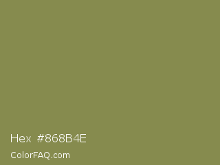 Hex #868b4e Color is a normal yellow color and the nearest color is Dark Tan #918151. Hex code #868b4e and RGB value is rgb(134,139,78). In RGB color space, this color is composed of 53% red, 55% green, 31% blue, In CMYK color space, this color is composed of 4% cyan, 0% magenta, 44% yellow , 45% black , In HSL color space, this color has a hue angle of 65° , 28% saturation and 43% lightness.