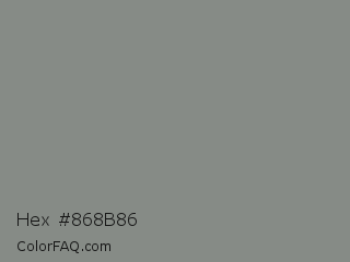 Hex #868b86 Color is a normal green color and the nearest color is Dolphin Gray #828e84. Hex code #868b86 and RGB value is rgb(134,139,134). In RGB color space, this color is composed of 53% red, 55% green, 53% blue, In CMYK color space, this color is composed of 4% cyan, 0% magenta, 4% yellow , 45% black , In HSL color space, this color has a hue angle of 120° , 2% saturation and 54% lightness.